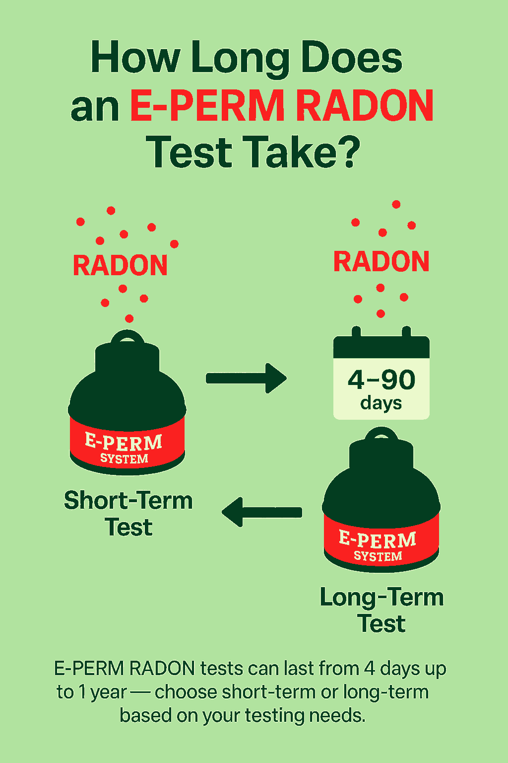 The E-PERM RADON test duration depends on the type of kit you choose: