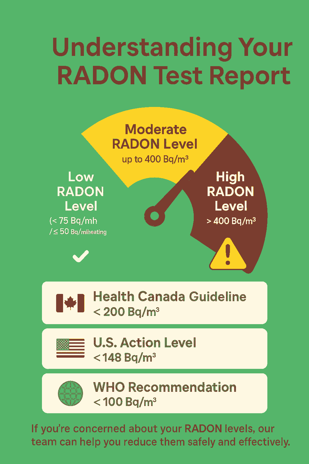 - 🇨🇦 Health Canada Guideline: Less than 200 Bq/m³