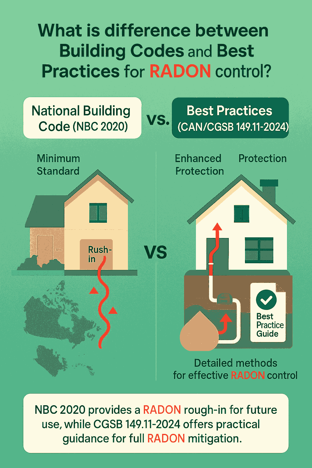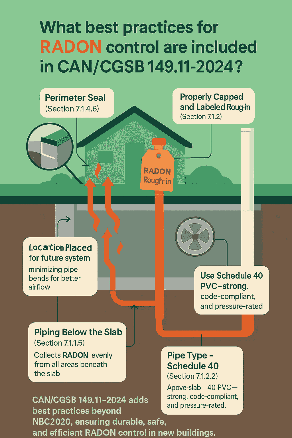 The CAN/CGSB 149.11-2024 standard provides best practices that go beyond the National Building Code (NBC 2020) to improve RADON prevention in new homes: