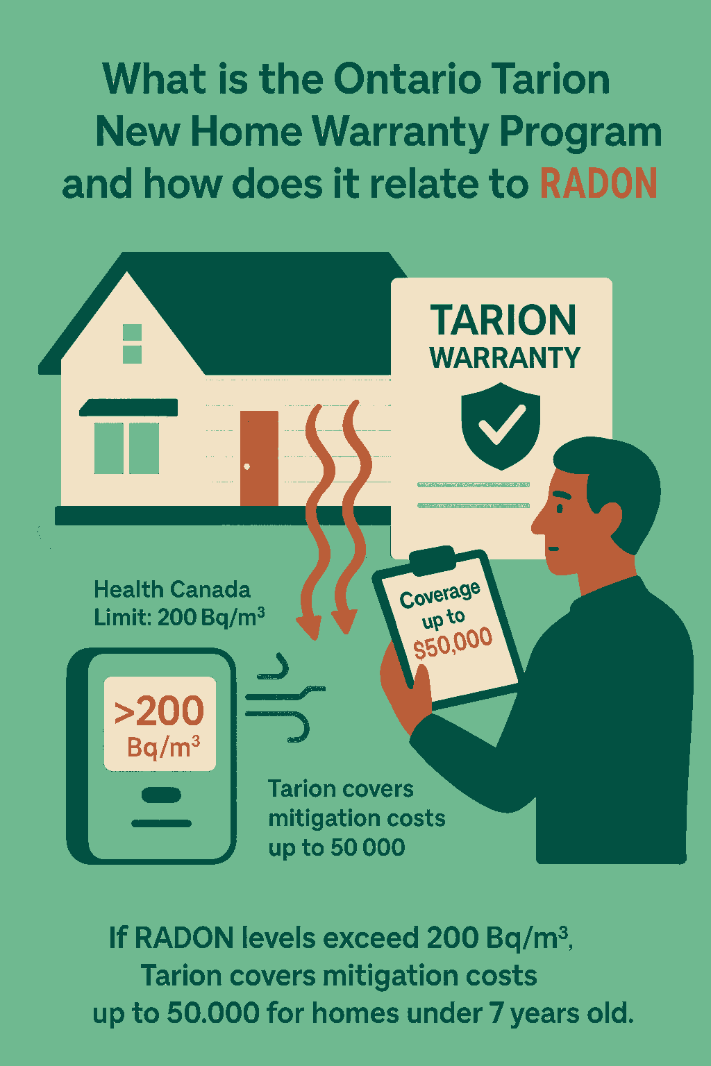 If a RADON test shows levels above 200 Bq/m³ (Health Canada’s limit), Tarion will cover the cost of mitigation up to $50,000.