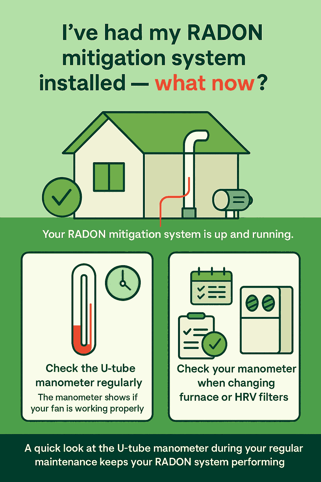 Congratulations! Your Sub-Slab Depressurization (SSD) system requires very little maintenance