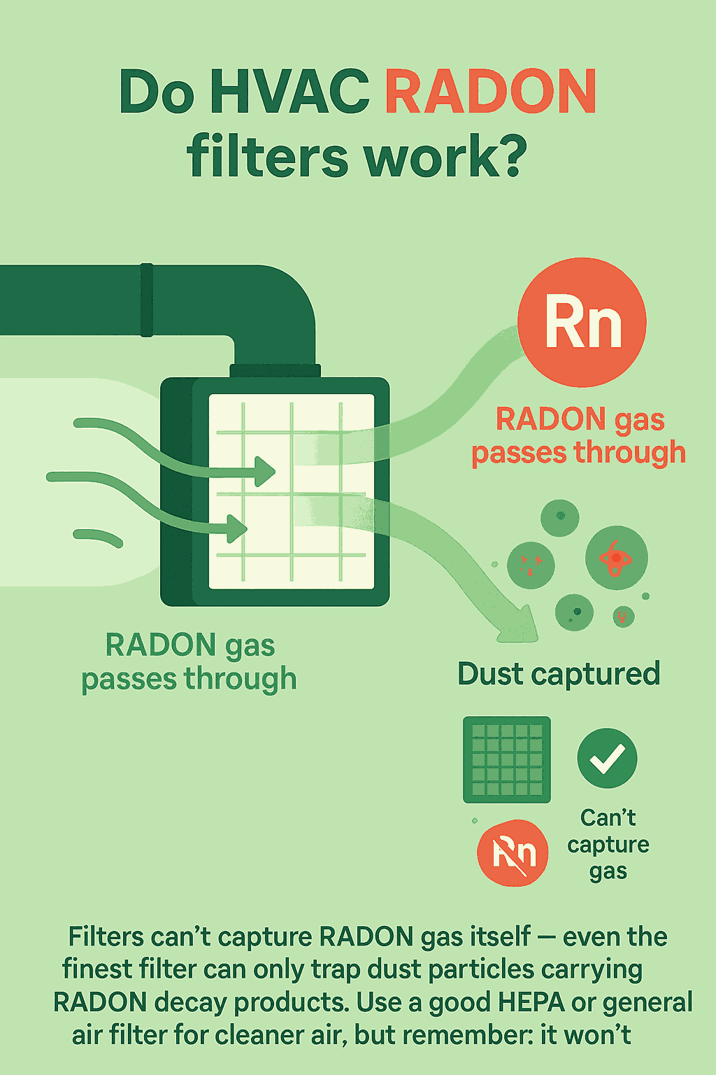 What filters like HEPA can do is reduce dust particles that may hold radioactive decay products from RADON, helping keep them out of the air and your lungs.