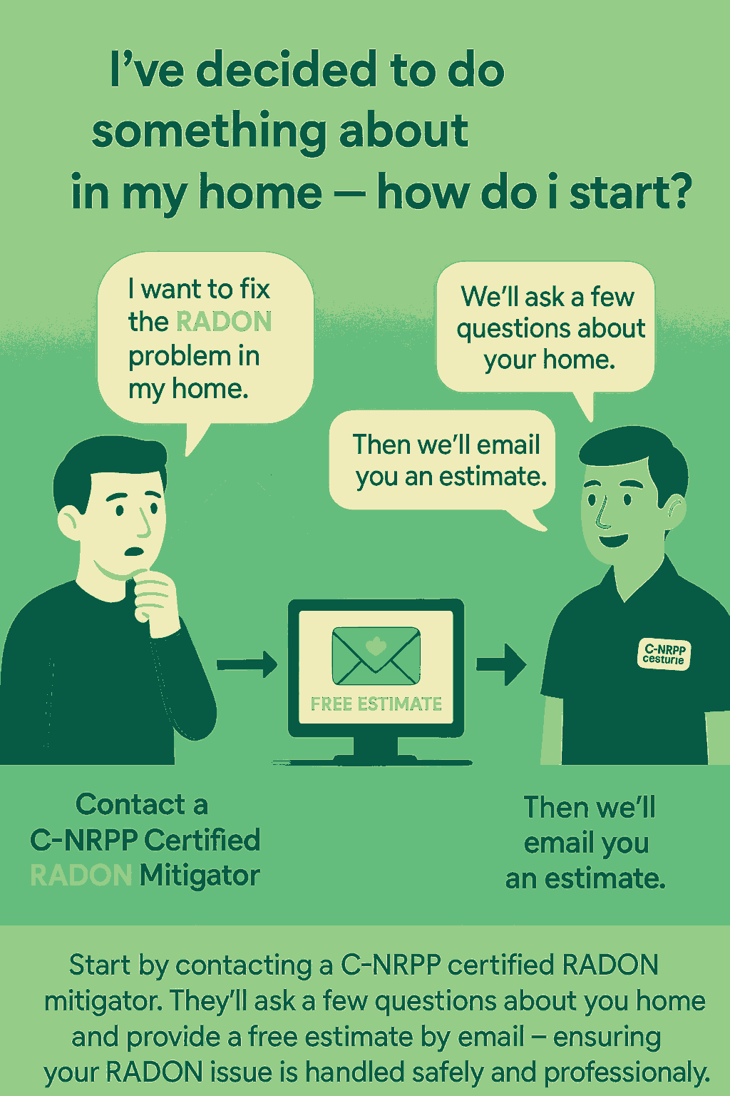 The first step is to contact a C-NRPP certified RADON mitigator to ensure your system is designed and installed by qualified professionals.