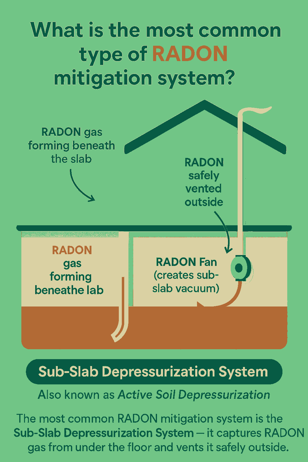 The most common system is called a Sub-Slab Depressurization System, also known as Active Soil Depressurization.