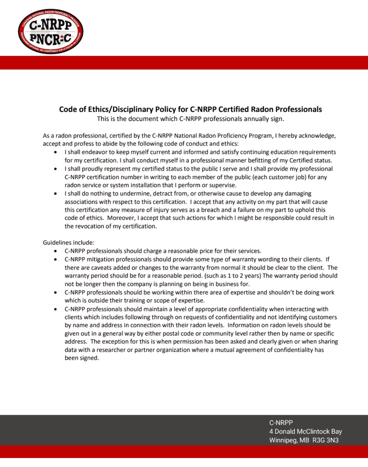 C-NRPP Code of Ethics and Professional Standards