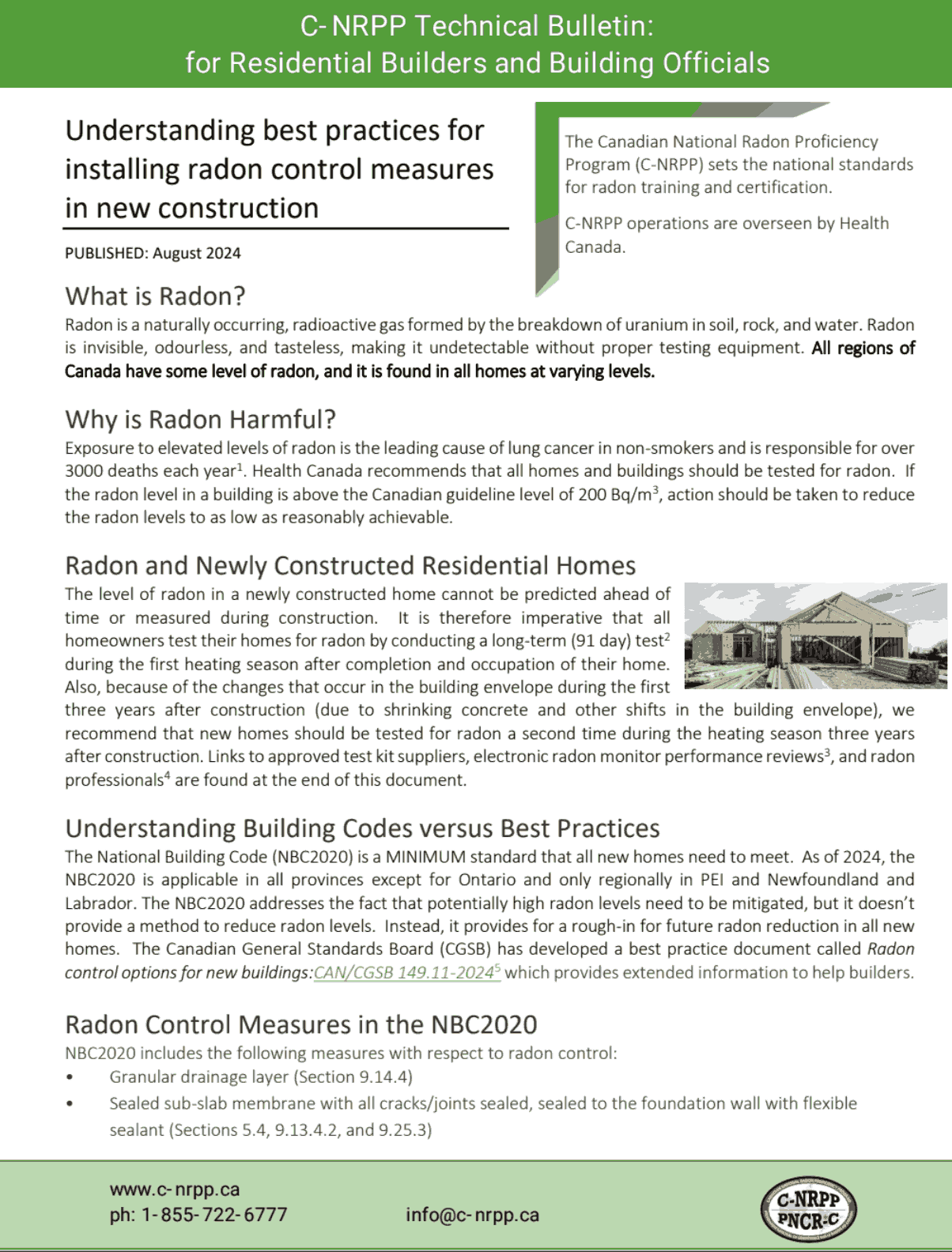 RADON Control in New Homes (C-NRPP Technical Bulletin 2024)