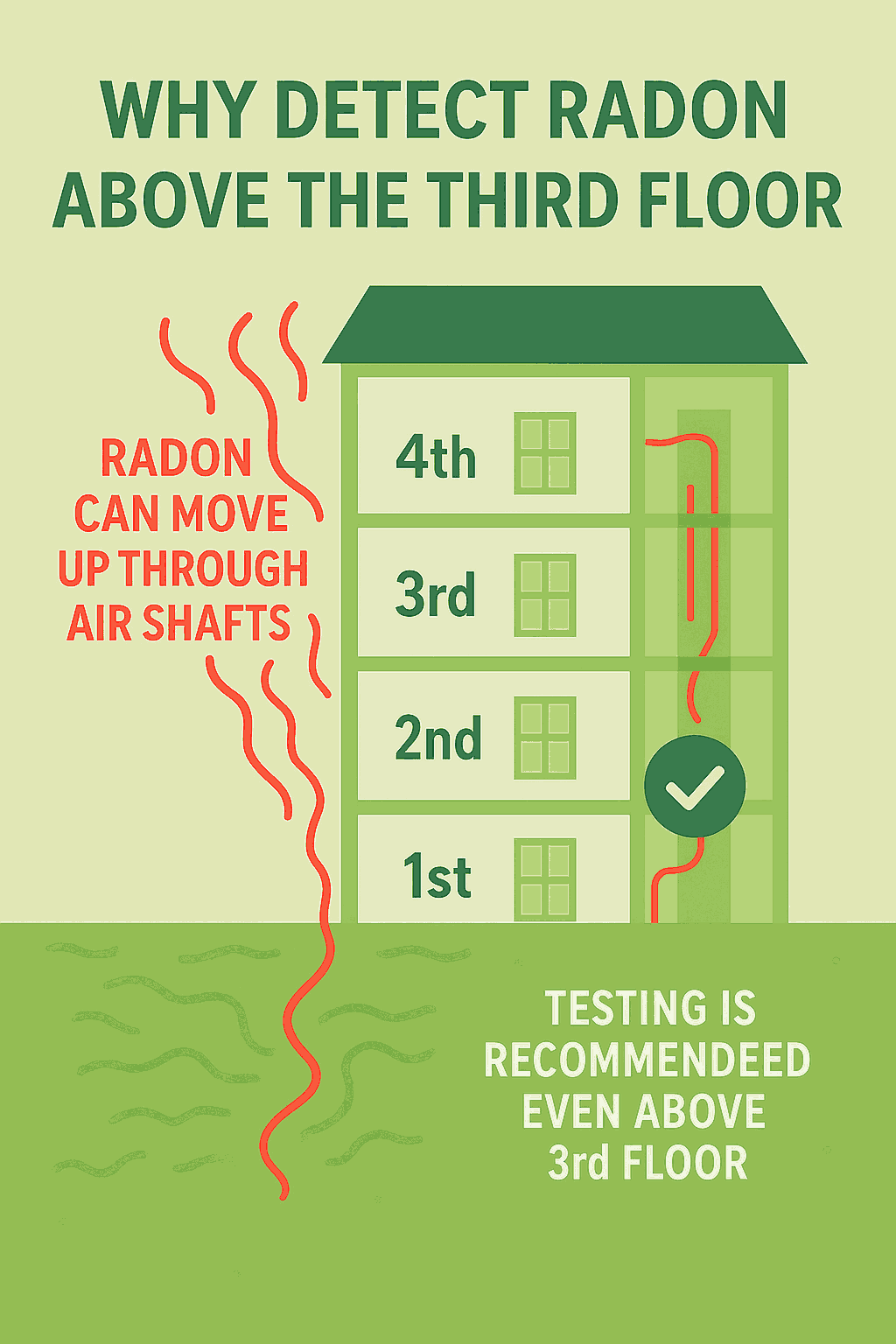 In some buildings, radon can move upward through elevator shafts or air ducts, reaching higher floors.