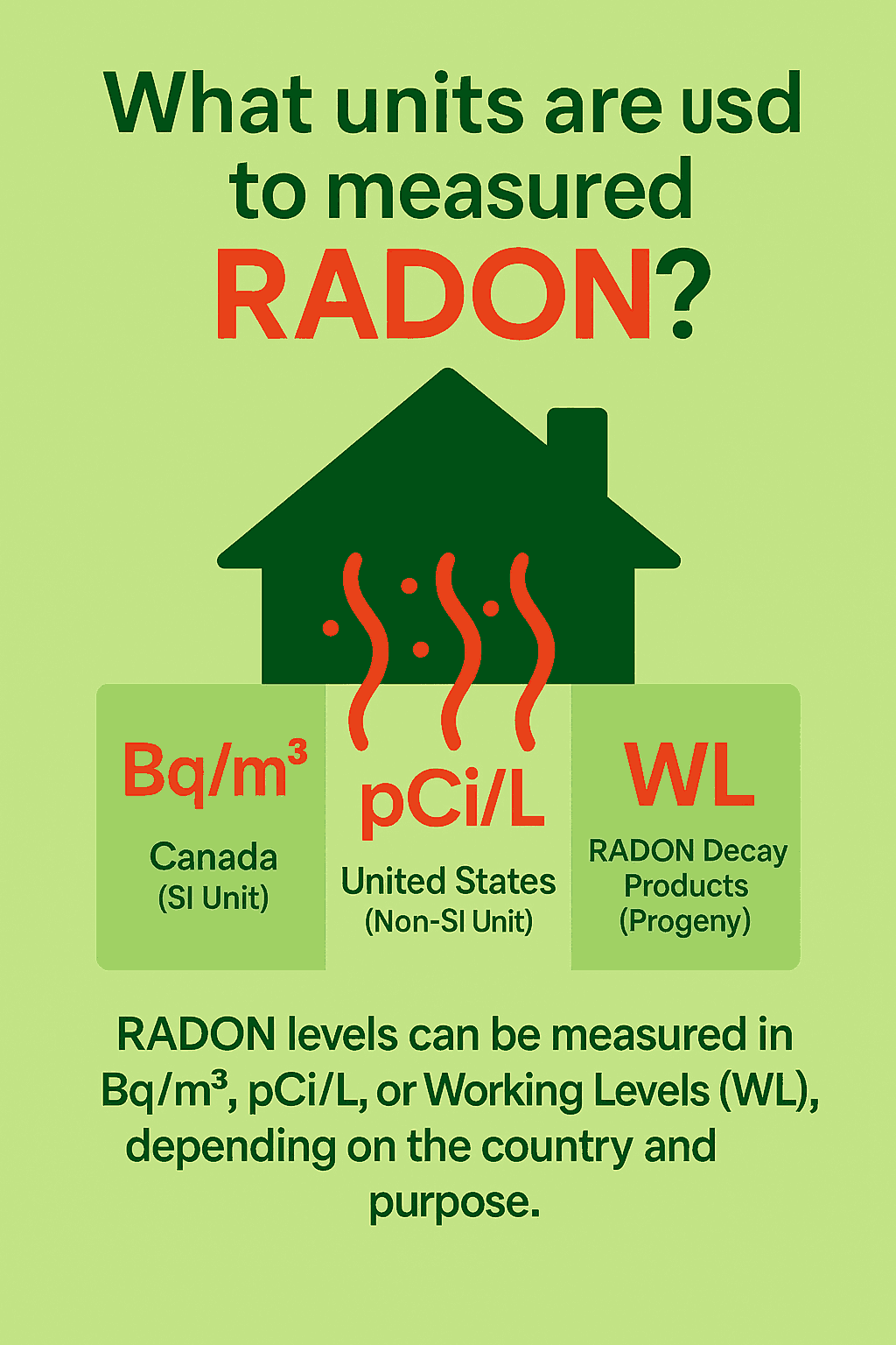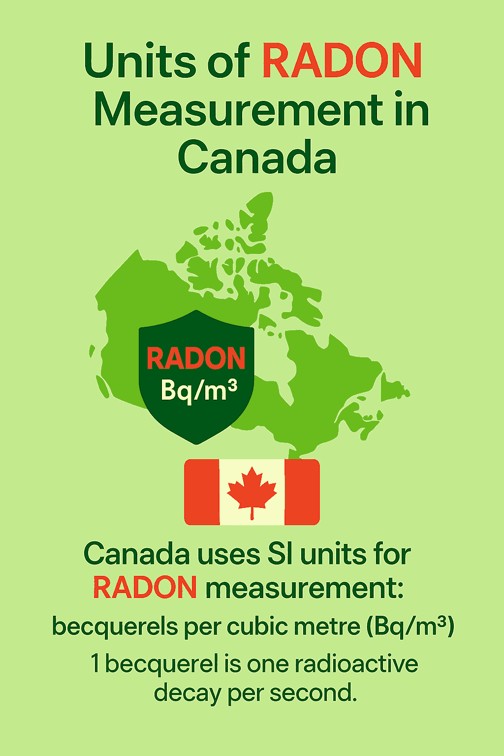 In Canada, RADON is measured in Becquerels per cubic metre (Bq/m³), following the International System of Units (SI).