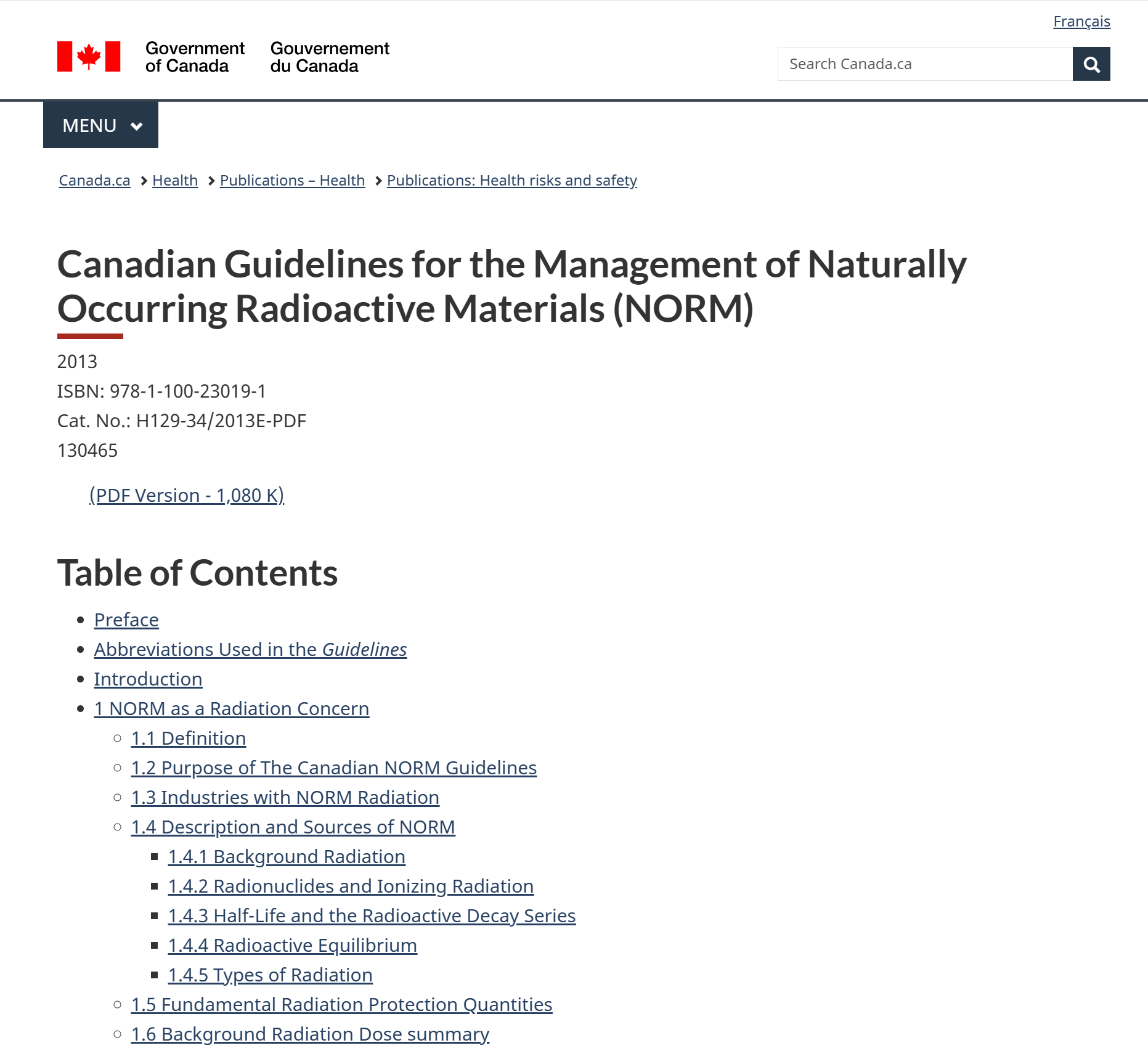 Canadian Guidelines for the Management of Naturally Occurring Radioactive Materials (NORM)